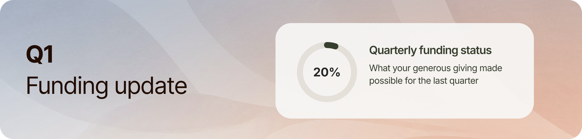 For Q1, we reached around 20% of the financial goal we had set to make this work sustainable. While we still have some distance to go, we’re continuing forward and trusting that, through your support, this can be sustained.